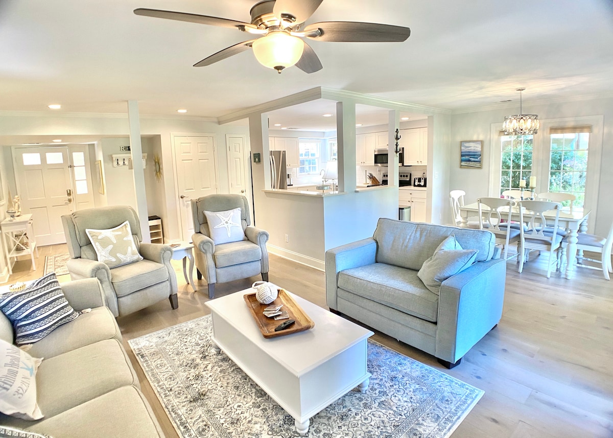 Dar ta 'livell wieħed ta' SF, li hija proprjetà privata, tinsab f 'lott ta' rokna bis-siġar li tinsab ġewwa d-daħla ta 'Sea Pines Resort. Din id-dar 3 BR, 2BA, ġiet rinnovata b 'mod estensiv f' Awwissu 2020, b 'dekor kostali ispirat Franċiż għal sens ta' rilassament. Il-chalet "Sea La Vie" jinsab f 'distanza ta' mixi sal-ħwienet tal-merċa, ħwienet u ristoranti. Sewqan qasir jew rikba fuq rota tieħdok lejn il-Beach Club privat, akkomodazzjoni għall-ikel u l-bar ta 'quddiem l-oċean, faċilitajiet ta' lussu, u bajjiet wesgħin. Bienvenue!