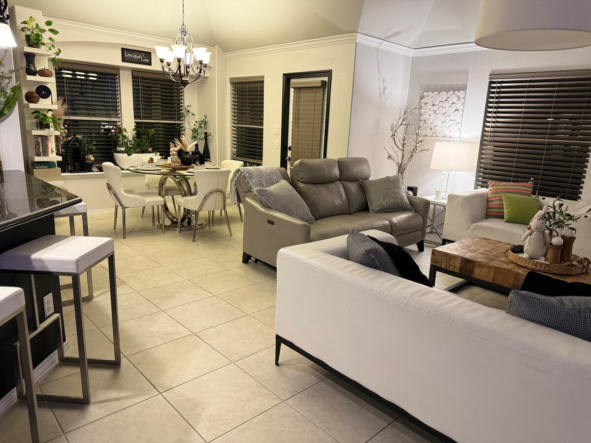 Ejja u gawdi l-ħin tiegħek f' dan il-post uniku li jinsab fiċ-ċentru! Mudell ġdid, kamra tas-sodda waħda, propjetà ta' kamra tal-banju waħda fi żmien 2 minuti sewqan sal-famuż FW Stockyards! Il-klijenti se jkollhom spazju komdu fejn joqogħdu biex jirrilassaw u jirrilassaw wara jum twil biex jesploraw Fort Worth. Din il-kċina mgħammra b' kollox għandha l-uċuħ tal-granit u dak kollu li għandek bżonn biex tħejji ikla jekk il-klijenti jixtiequ. L-appliances kollha huma ta' daqs sħiħ fil-propjetà. Hemm 2 TVs Roku, flimkien ma' internet b' veloċità għolja.