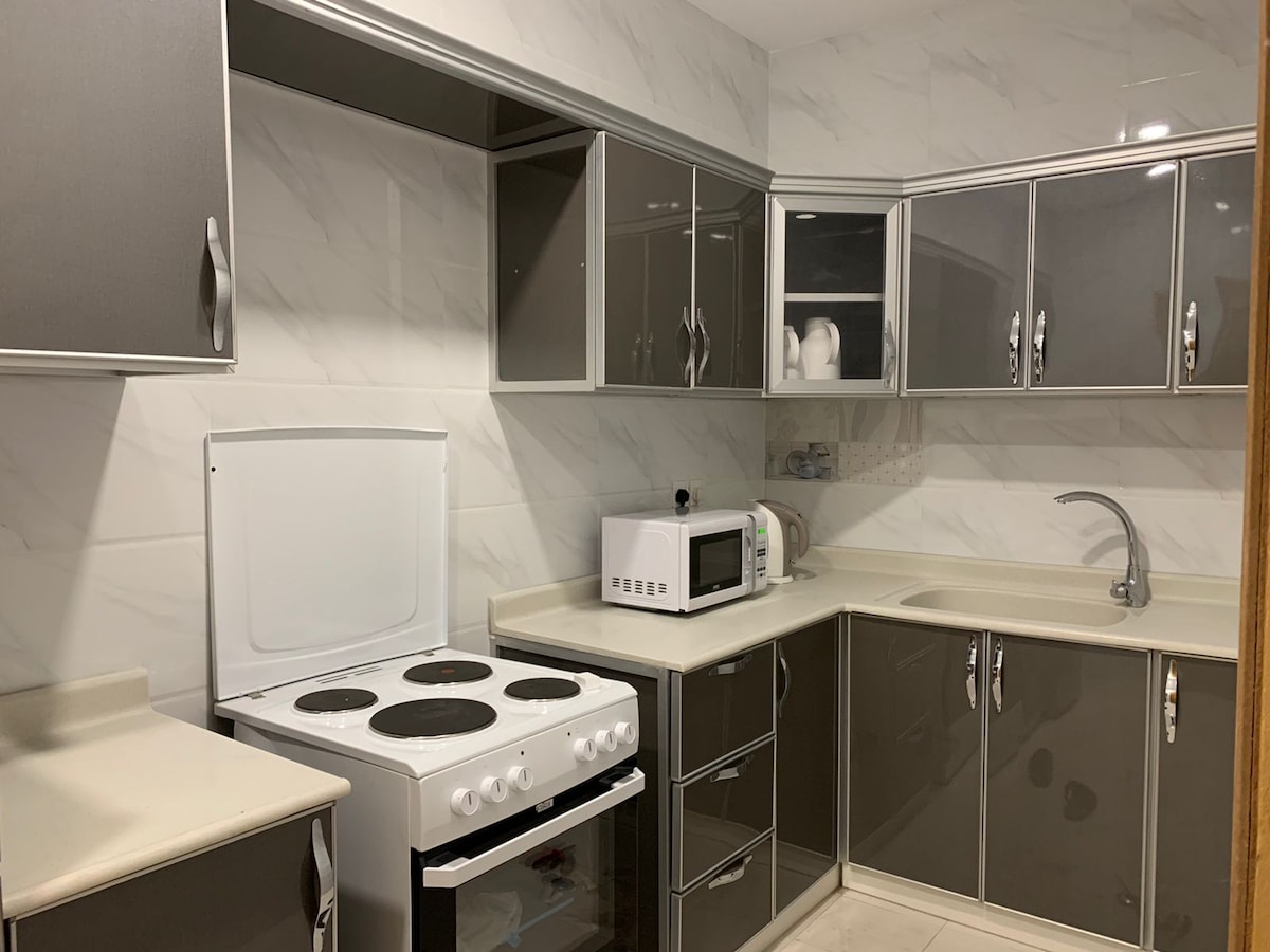 Appartament eleganti huwa 5 minuti mixi 'l bogħod minn Dammam Corniche bil-Wi-Fi u TV ta' 65 pulzier li jappoġġja l-programmi kollha