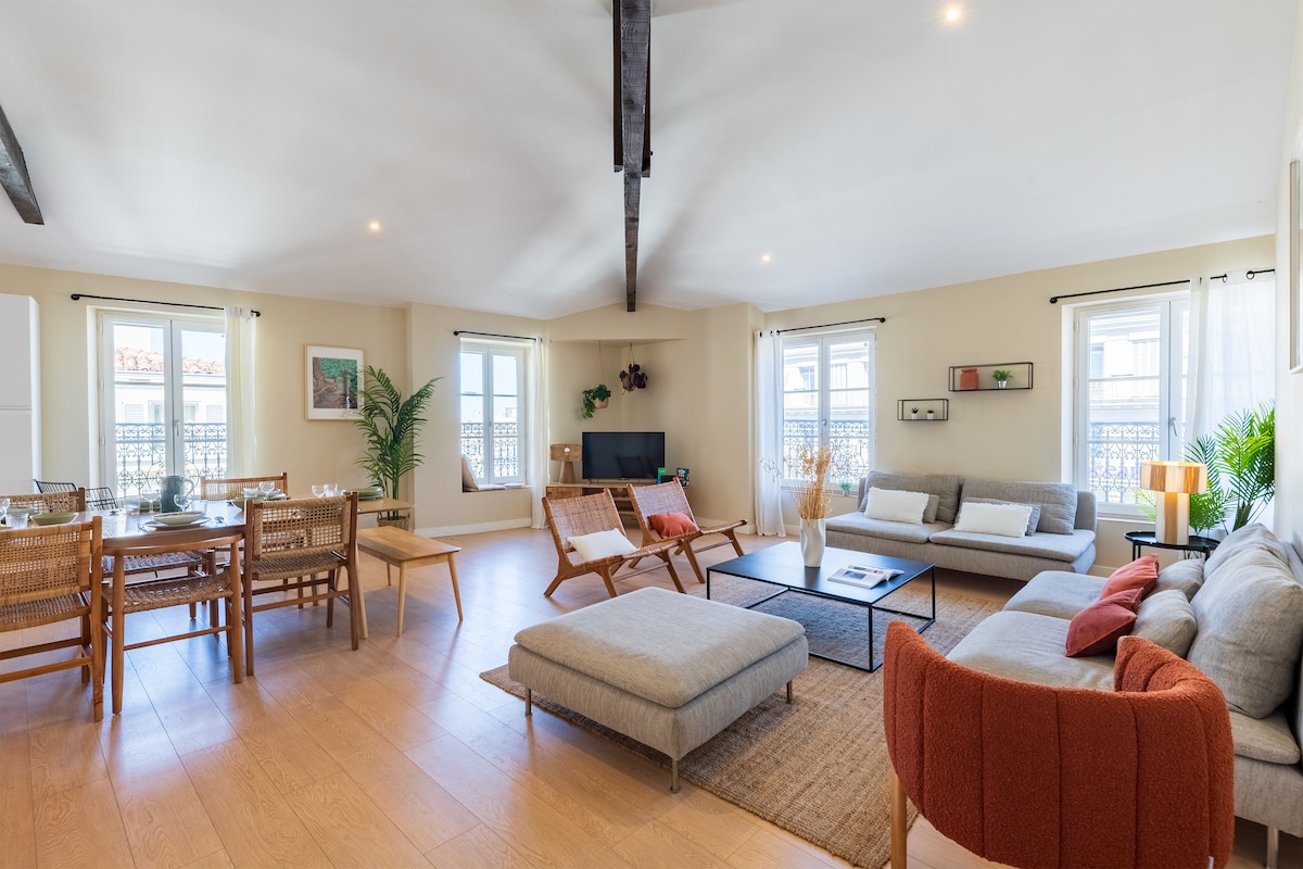 Idealment jinsab bejn il-Port il-Qadim (50m) u l-Cours Estienne d' Orves (50m), dan il-loft duplex ta' 82 m² huwa r-riżultat tar-riabilitazzjoni tat-tielet u l-aħħar sular ta' fabbrika qadima tas-sapun. Il-patina terrakotta ta' seklu, is-salott tal-katidral u t-travu ta' arbli galleys qodma jittrażmettu lejn dan il-post kompletament rinnovat, karattru uniku ta' awtentiċità. L-ispazji tal-kċina differenti, miftuħa għal kollox, joħolqu atmosfera sħuna, mingħajr imbarazz u kontemporanja.