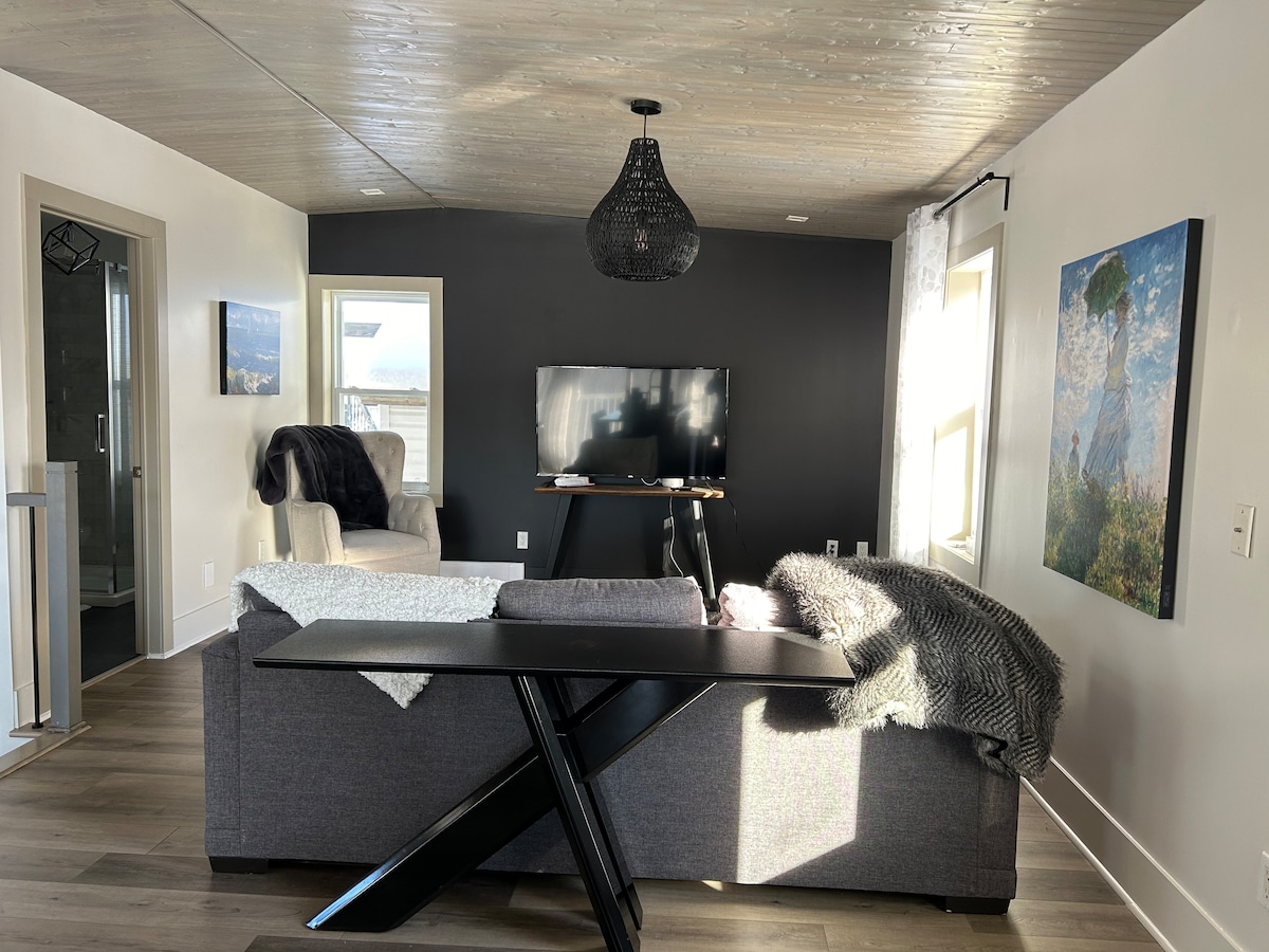 Loft mill-isbaħ qrib iċ-ċentru ta' Saint-Georges. Post tajjeb ħafna. Il-kumditajiet kollha meħtieġa għal żjara qasira u fit-tul. Aċċess għall-jacuzzi ta 'barra matul is-sena kollha, il-garaxx imsaħħan, l-ispazji għall-parkeġġ fuq barra kif ukoll għat-terrazzin bil-fireplace. Daħla indipendenti fit-tieni sular b 'kodiċi ta' aċċess. Kċina kompluta, wifi bla limitu, TV 52"b' apps ta' streaming u console PS4. Ċarġer EV 30A permezz tal-adapter NEMA 14-50P. (teħtieġ l-adapter tiegħek) * Aċċessibbiltà biss skont il-passi. L-ebda rampa ta 'aċċess *