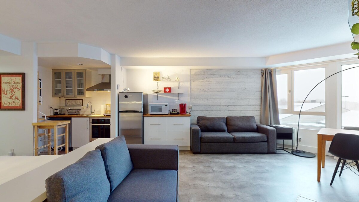 Gawdi ż-żjara tiegħek f' appartament sabiħ li jagħti fuq l-għoljiet tal-iskijjar. Il-kondominju jinsab 5 minuti mixi lejn il-muntanja tal-iskijjar. Il-kondominju kien jinkludi; kamra tas-sodda waħda b' sodda doppja, kamra tas-sodda waħda b' sodda doppja, sufan sodda, kamra tal-banju waħda li tinkludi doċċa, magna tal-ħasil u dryer, cooker tal-injam bl-injam u arja kkundizzjonata , 2 spazji għall-parkeġġ u Wifi veloċi. Attivitajiet fil-qrib: Skiing Alpin, Golf, mountain biking (Empire 47) u Jacques Cartier National Park.