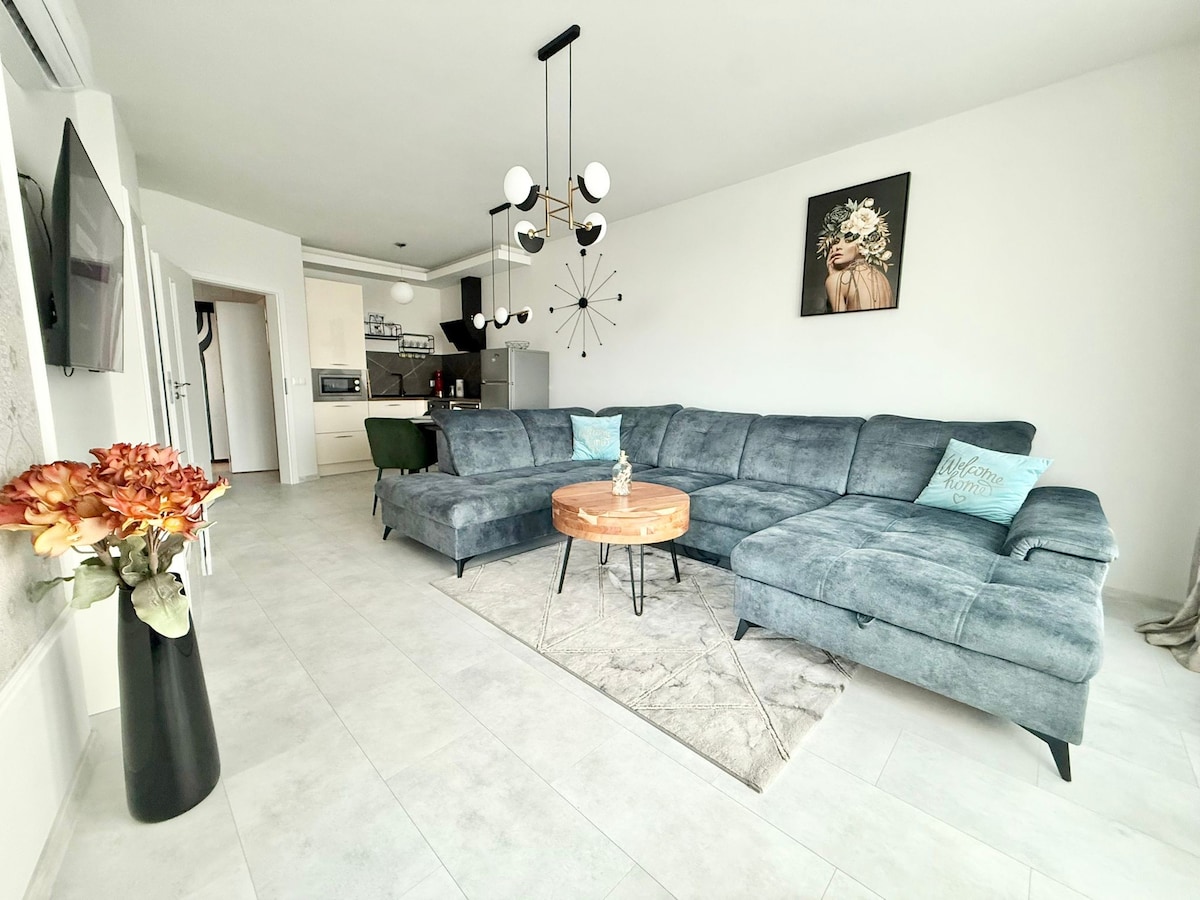 L-appartament spazjuż tagħna b 'kamra tas-sodda waħda għandu veduta sabiħa li rridu naqsmu miegħek u ħafna dawl tax-xemx. Aħna ninsabu fil-bidu taż-żona ċentrali pedonali fejn tista 'ssib varjetà kbira ta' ristoranti u ħwienet tax-xorb kif ukoll postijiet li jiċċelebraw l-arti kulturali. Il-Ġnien tal-Baħar, il-bajja u l-marina huma 10-15-il minuta bil-mixi. Hemm aċċess dirett għat-trasport pubbliku quddiem il-bini li se jwassalek għall-Mall, l-Ajruport u Golden Sands.