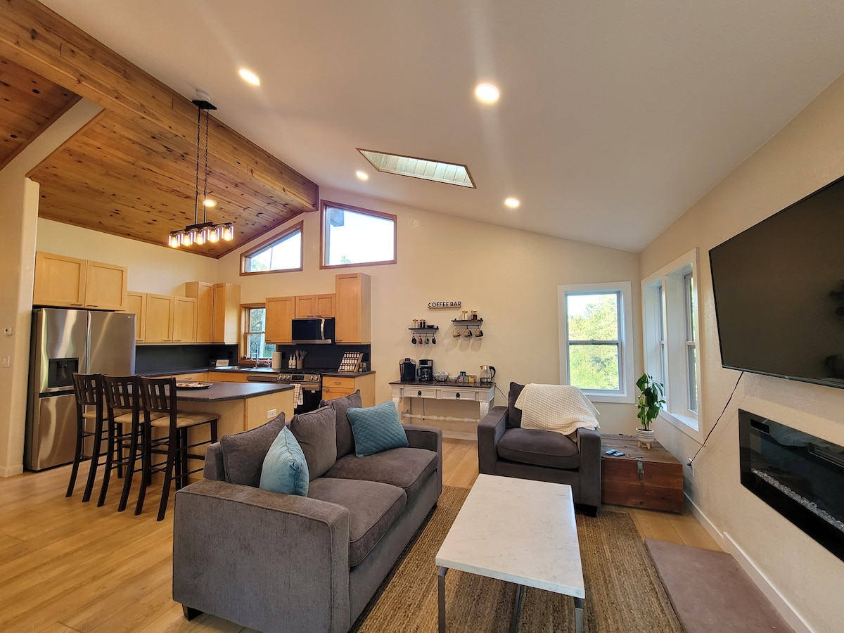 L-ispazju ta' ġewwa hemm sufan ta' daqs sħiħ li jilqgħek flimkien mal-forn li jaħraq l-injam. Ara l-fjammi mit-tazza u gawdi veduti spettakolari tal-Qċaċet Indjani. Hemm taraġ li jwassal għal-lof fejn se tistrieħ fuq saqqu ta' daqs queen. Inti se jkollok privatezza sħiħa waqt li tgawdi mill-esperjenza ta' glamping li tkun fi spazju iżolat b' kumditajiet moderni bħal WiFi, microwave u friġġ. Il-Blue Bear huwa off-grid, l-elettriku huwa prodott mix-xemx. Grill ta' daqs sħiħ fuq barra.