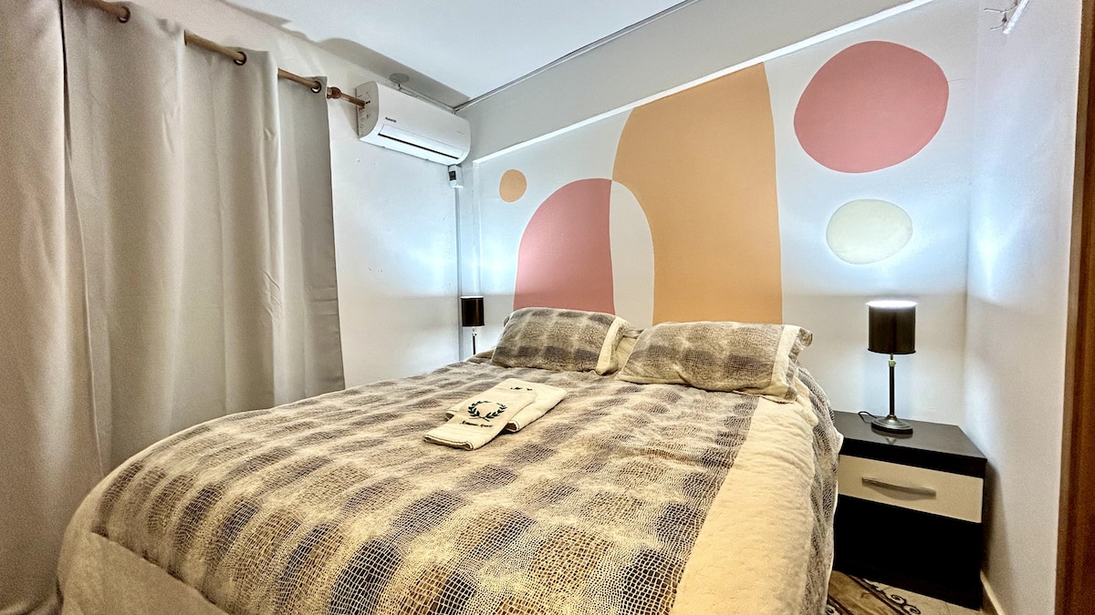 Es una pieza al fondo de la casa, con baño compartido y pocas comodidades. Adecuado si estás buscando bajar al mínimo tus gastos de viaje. Sin lujos, una cama, un baño compartido, ventilador, ropa de cama y toallas. Hay áreas comunes de cocina y comedor. La habitación es privada, con una sola cama. Como mascotas puedo aceptar solamente 1 gato. No perros ni otros animales