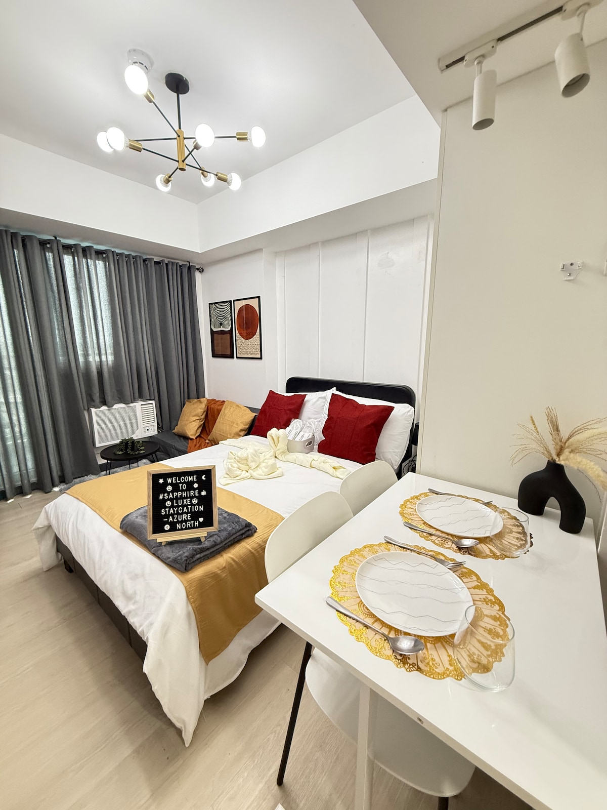 Ħarba lejn post romantiku modern ġewwa Azure North Pampanga. Din l-unità eleganti għandha gallarija spazjuża b' pixxina mill-isbaħ u veduti tal-belt, ideali għall-iljieli tal-inbid jew għall-kafè ta' filgħodu tiegħek. Gawdi minn interjuri komdi, dawl ambjentali u atmosfera serra ideali għall-koppji, għall-familji jew għal dawk li jirrilassaw waħedhom. Qiegħed f' bini premium b' kumditajiet ta' stil ta' resort. Il-post fejn toqgħod tal-ħolm tiegħek jibda hawn.