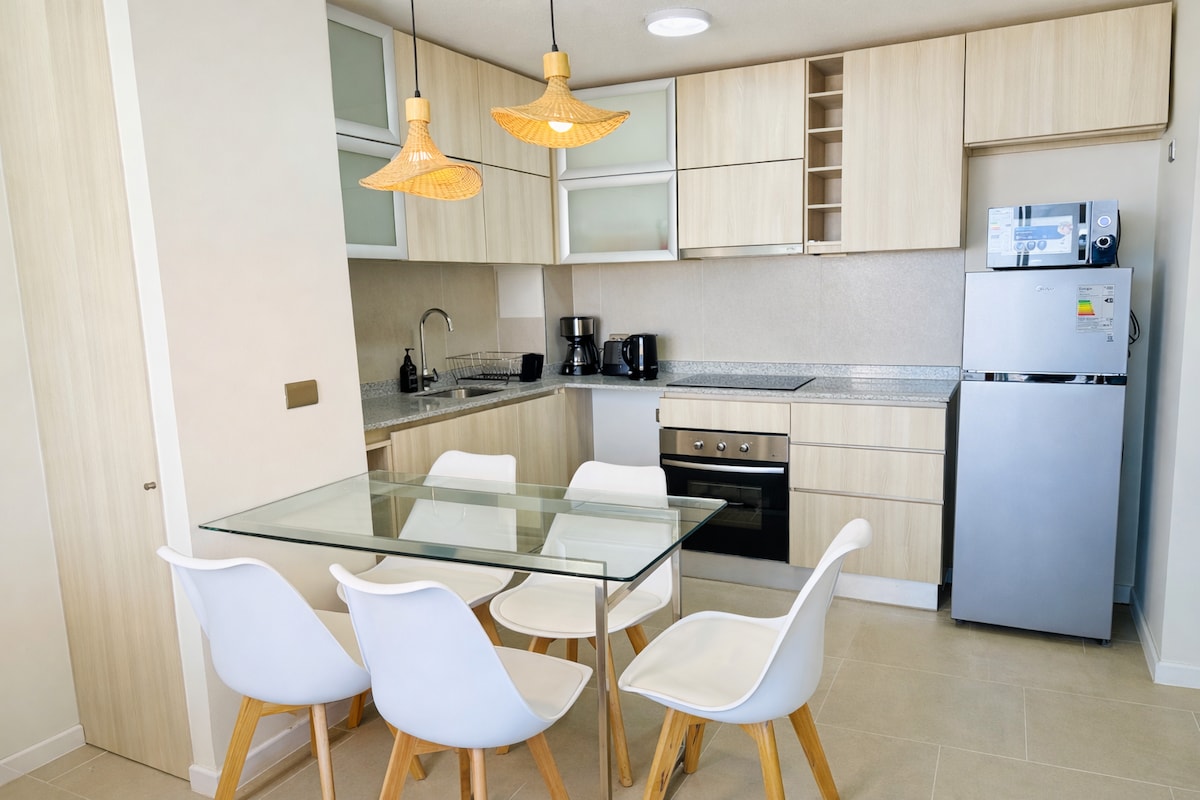 Appartament mgħammar b'kollox, f'post ċentrali, b'veduti sbieħ tal-port. Għandha terrazzin magħluq, ideali biex tgawdi nżul ix-xemx mill-isbaħ matul is-sena kollha. Konnessjoni eċċellenti mal-kummerċ, ristoranti u servizzi. Biss 15-il minuta 'l bogħod minn Santo Domingo u l-bajjiet tal-kosta bħal El Tabo, El Quisco u Isla Negra. Ideali għall-mistrieħ, mixjiet mal-familja jew vjaġġi għax-xogħol. Jinkludi parkeġġ ġewwa l-kondominju.