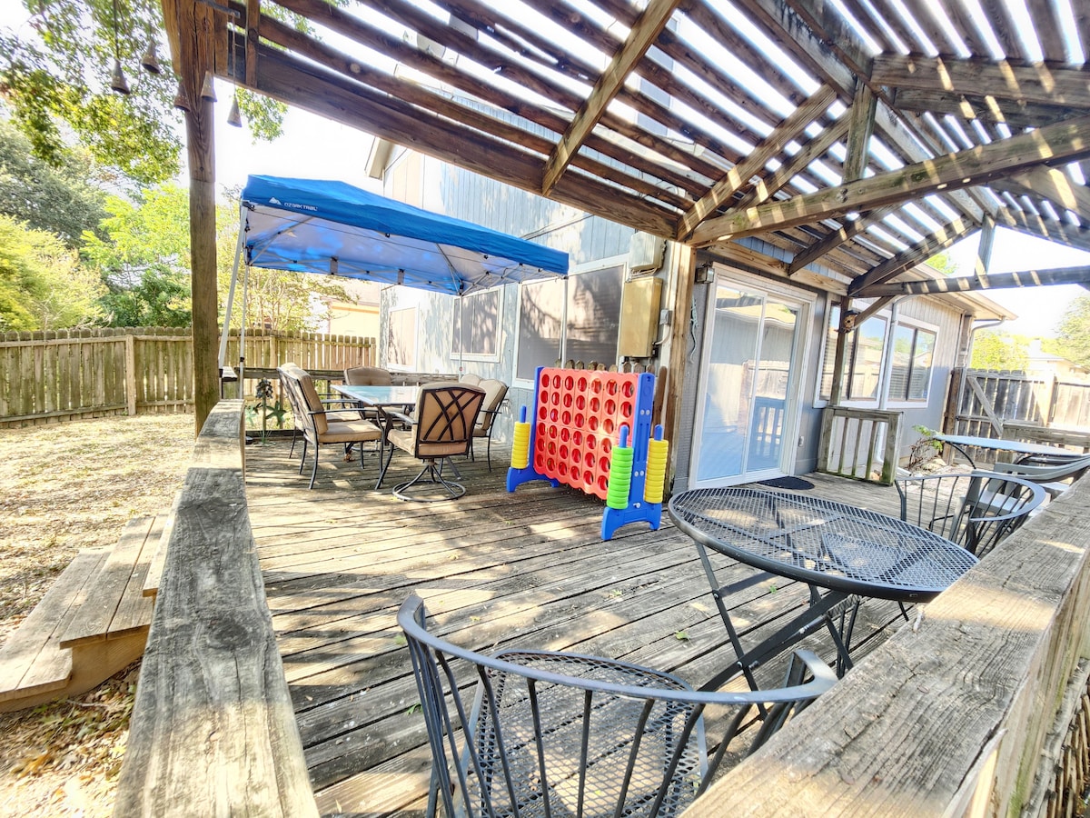 Esperjenza San Antonio mid-dar 3BR 2Bath tagħna u idħol fl-ambjent uniku u amikevoli tal-viċinat ta' Los Jardines. Din id-dar mill-isbaħ tinsab biss 10 minuti 'l bogħod mill-Bażi tal-Ajru ta' Lackland u ħafna punti ta' interess oħra tal-belt, fosthom l-Alamo, il-Ġnien tat-Te Ġappuniż, ix-Xmara Mixja u ħafna aktar! ✔ 3 BRs Komdi Ħajja b' Disinn✔ Miftuħ ✔ Kċina Sħiħa ✔ Bitħa (Ikla, BBQ) ✔ Smart TVs b 'Servizzi ta' Streaming ✔ Veloċità għolja Wi-Fi ✔ Spazju għall-ħidma ✔ Parkeġġ bla ħlas Ara iktar hawn taħt!