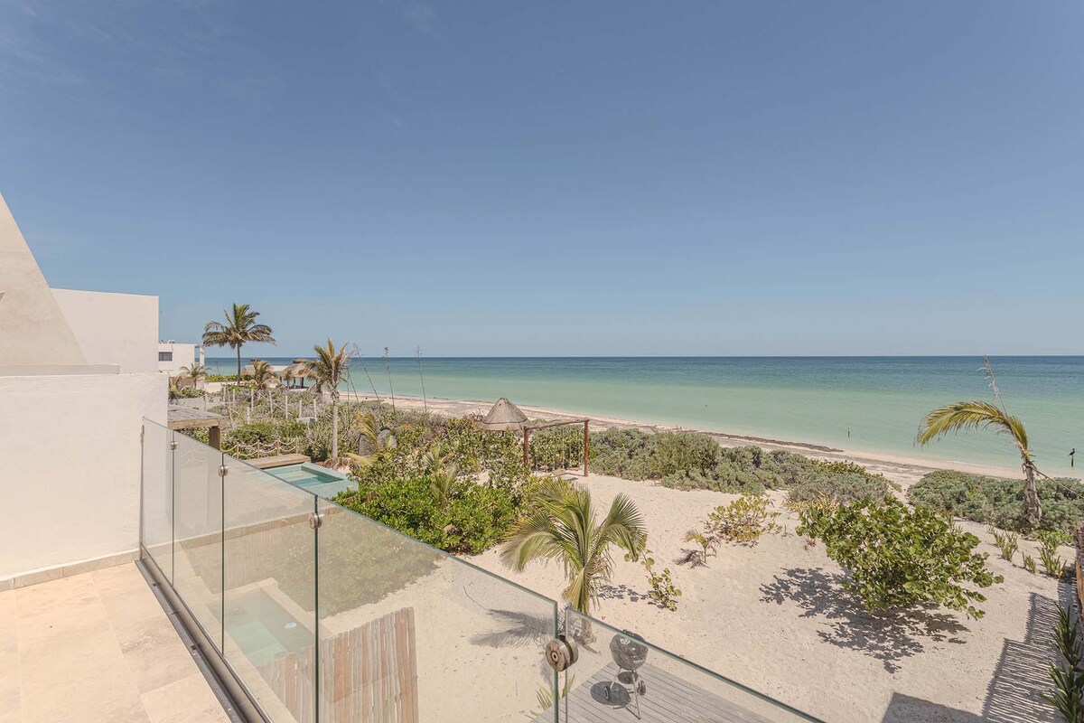 Merħba fil-villa faċċata tal-bajja tagħna Casa Kyma ġewwa San Crisanto (50 minuta 'l bogħod minn Merida, Yucatan, il-Messiku). Se jkollok il-villa kollha bi 3 ikmamar tas-sodda b' veduti tal-oċean u nżul tax-xemx mill-isbaħ. Kull spazju huwa mfassal bi ħsieb fi stil għaż-żjara mill-isbaħ tiegħek. Il-villa tista' takkomoda 6 adulti, bit-tfal jaqsmu sodda mal-ġenituri tagħhom mingħajr ebda tariffa żejda. Ġewwa l-villa hemm kċina mgħammra b' kollox u fuq barra hemm żona tal-BBQ għal ftit grilling fuq barra pjaċevoli.