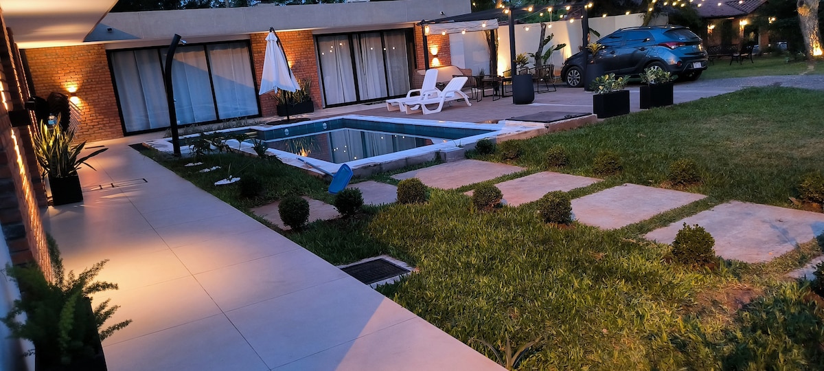 Dar komda mibnija f' nofs foresta żgħira ppreservata. L-ispazju offrut f' dan il-listing huwa parti minn bini kbir maqsum f' żewġ setturi: 1 Id-dar li ngħix fiha 2 spazji separati għall-klijenti. Maqsuma miegħi: iż-żona ta' barra u l-pixxina. Jinsab fil-belt ta' Areguá, fuq ix-xatt tal-Lag Ypakarai, li huwa magħruf għall-artiġjani tat-tafal u l-pjantaġġuni tal-frawli li jattiraw lill-viżitaturi matul is-sena. Id-dar għandha sistema tal-allarm u Wi-Fi.
