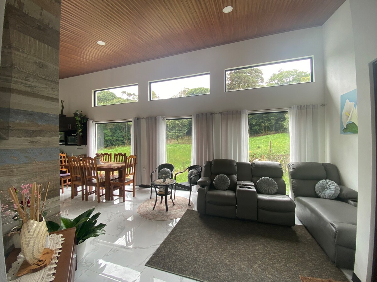 Brand new house with incredible views, not only to the Arenal Volcano, but also to the Tenorio and Miravalles Volcanoes and the town of La Fortuna. The design of this house is inspired on the Oxcart which were very important for the economy of the country on the 1900's. You will also find our grandpa's Oxcart next to the house, and it is very photogenic, so feel free to take a nice picture of it, with the Volcano at the back!