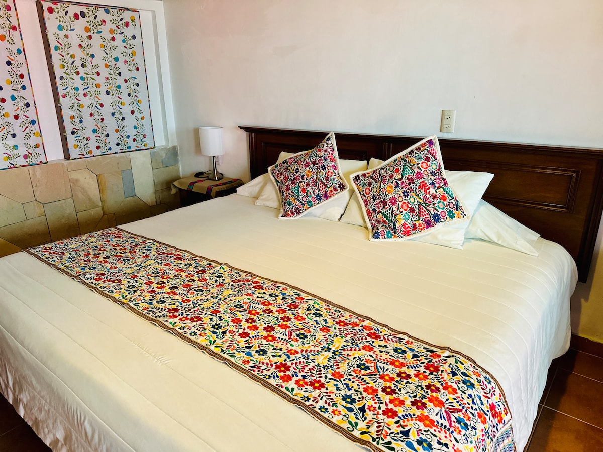 Kamra privata b' sodda king-size għan-nies li qed ifittxu l-ikbar kumdità u spazju possibbli. 10 minuti mixi 'l bogħod miċ-Ċentru Storiku ta' San Cristobal, fil-Barrio de Mexicanos kwiet. 📍 Post Tajjeb: - 10 minuti mixi 'l bogħod miċ-Ċentru Storiku - Qrib ħafna ta' Santo Domingo - tempju kolonjali ikoniċi - Aċċess ħafif għall-passaġġi għall-mixi - Viċinat sigur u kwiet - ideali biex tirrilassa - Konnessjoni eċċellenti mas-swieq lokali u r-ristoranti tipiċi