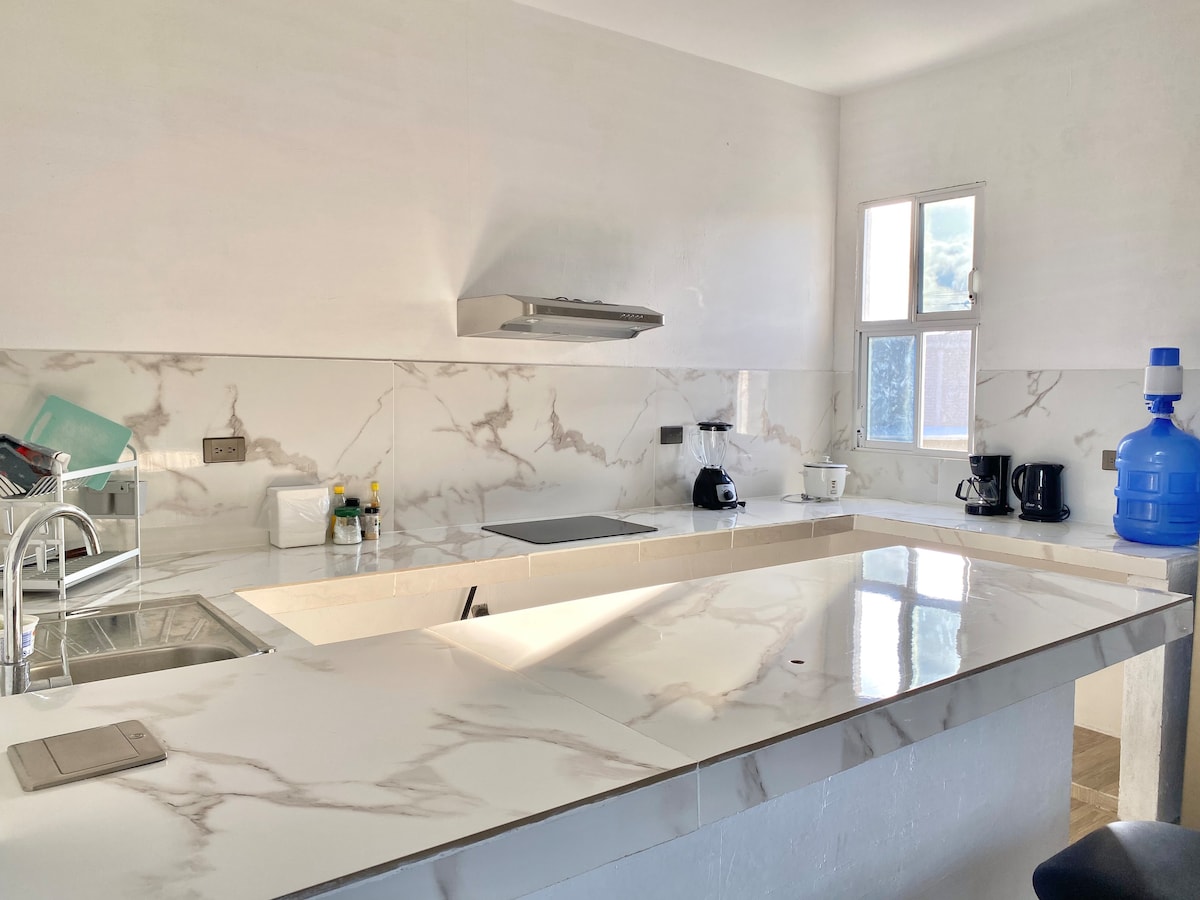 Disfruta de una experiencia con estilo en este alojamiento céntrico, acogedor y agradable. Situado en una zona tranquila y segura a pocos metros del malecón y lugares de interés de la población. Departamento con buena iluminación natural con una decoración minimalista para hacer de tu estadía algo relajante. La cocina dispone lo necesario para preparar comidas. El baño equipado con ducha de calefón. Toma el té al aire libre en nuestro balcón perfecto para disfrutar del ambiente tropical.