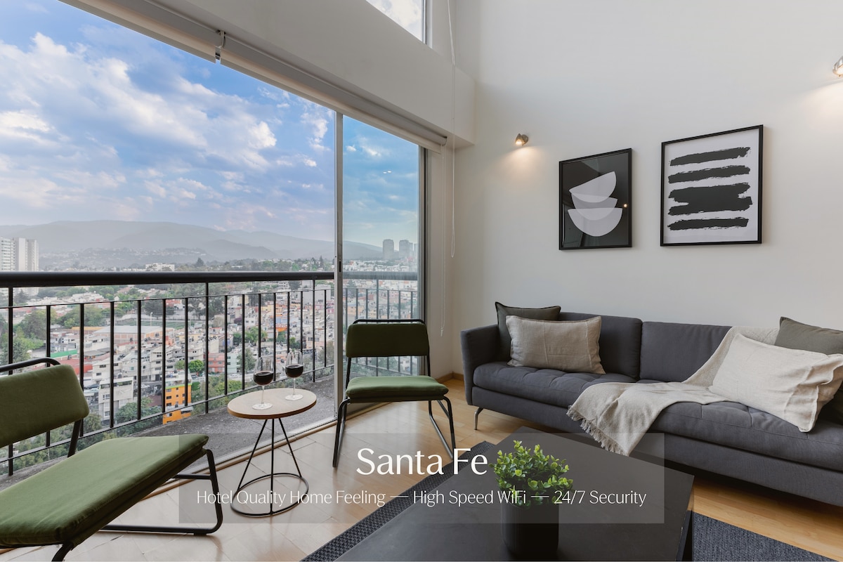 Totalmente nuevo departamento de lujo en la zona mas céntrica de Santa Fe con extraordinarias amenidades. Excelente para estancias de trabajo y placer con todos los servicios y necesidades para el viajero a la redonda así como facilidad para llegar a cualquier punto de Santa Fe y zonas corporativas Cuenta con recepción , servicio al depto , Bar restaurante , Internet de alta velocidad y amendidades ( LAS AMENIDADES SOLO APLICAN EN ESTANCIAS MAYORES A 7 DIAS FAVOR DE CONSIDERAR AL RESERVAR).