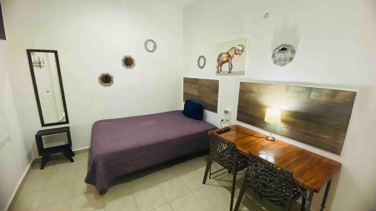 Ideali għal dawk li jħobbu l-bajja u n-natura li qed ifittxu vaganza kwieta! Wieħed mill-aqwa postijiet privati fuq il-gżira, b' aċċess dirett għal bajja ramlija fejn tista' tgawdi l-isports tal-ilma jew sempliċiment tirrilassa fuq il-kosta. Sewqan ta '5 minuti biss lejn iż-żona ċentrali ta' Cozumel. Din is-suite li għadha kif ġiet irranġata għandha dak kollu li teħtieġ għal żjara komda fosthom: terrazzin miftuħ fuq barra, studio kbir, kamra tal-banju privata, arja kkundizzjonata, smart TV, Wi-Fi u kċina żgħira mgħammra b' appliances ġodda.