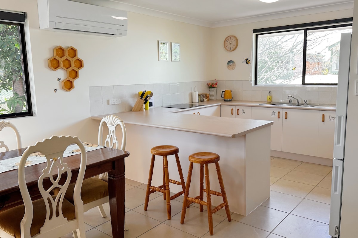 Appartament separat li fih innifsu b' daħla privata tiegħek, żona fejn toqgħod bilqiegħda, kċina sħiħa, kamra tal-banju, ħasil tal-ħwejjeġ, kamra tas-sodda b' sodda qies queen. Dak kollu li għandek bżonn biex tgawdi ż-żjara tiegħek fuq Bribie sabiħa b' arja kkundizzjonata b' ċiklu bil-maqlub, fannijiet tas-saqaf, wi-fi bla ħlas u Netflix. Post ċentrali 5 minuti mixi sa ċentru kummerċjali ewlieni ta' Bribie għall-merċa, ix-xorb u l-għażliet tar-ristoranti tiegħek. 10 minuti mixi sa passaġġ piktoresk ta' Pumicestone, 20 minuta mixi sa Sandstone Point Hotel u 10 minuti sewqan sa bajja tas-surf.
