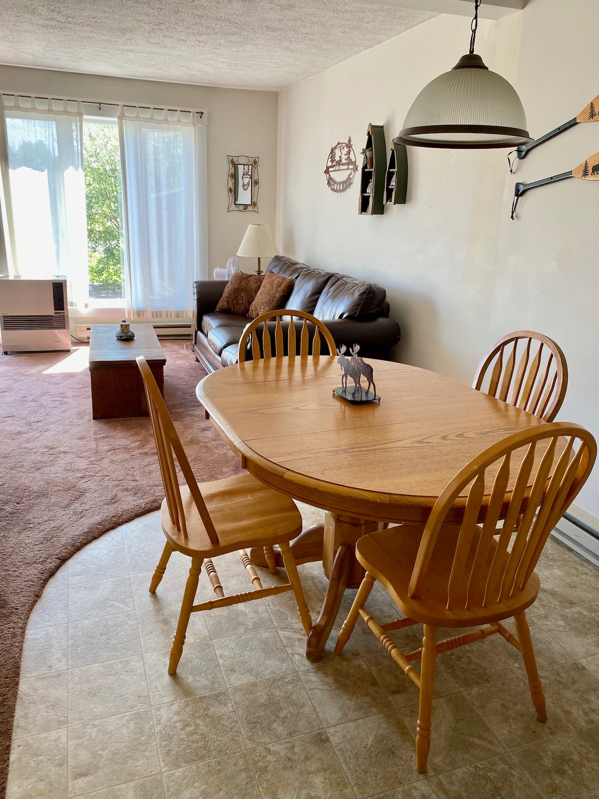 10 minuti sewqan faċli sa Sugarloaf skiing b' mogħdijiet bejn il-pajjiżi u r-roti tal-muntanji direttament mill-bieb tiegħek! Appartament tas-sular t' isfel li jagħti fuq ix-Xmara Carrabassett. Jorqdu tlieta: Sodda queen fil-kamra tas-sodda u sodda 'jum' fis-salott. Grill tal-gass fuq il-gverta, cable TV bażiku, wireless, kelliem Bluetooth. Lesti l-istazzjon tax-xogħol bl-iskrivanija, il-moniter tal-kompjuter, il-printer, it-tastiera, il-ġurdien, eċċ. (M'hemmx magna tal-ħasil tal-platti.) Aċċess għal magna tal-ħasil tal-ħwejjeġ li taħdem bil-muniti. Parkeġġ b'xejn. L-ebda annimal domestiku. L-ebda persuna li tpejjep.