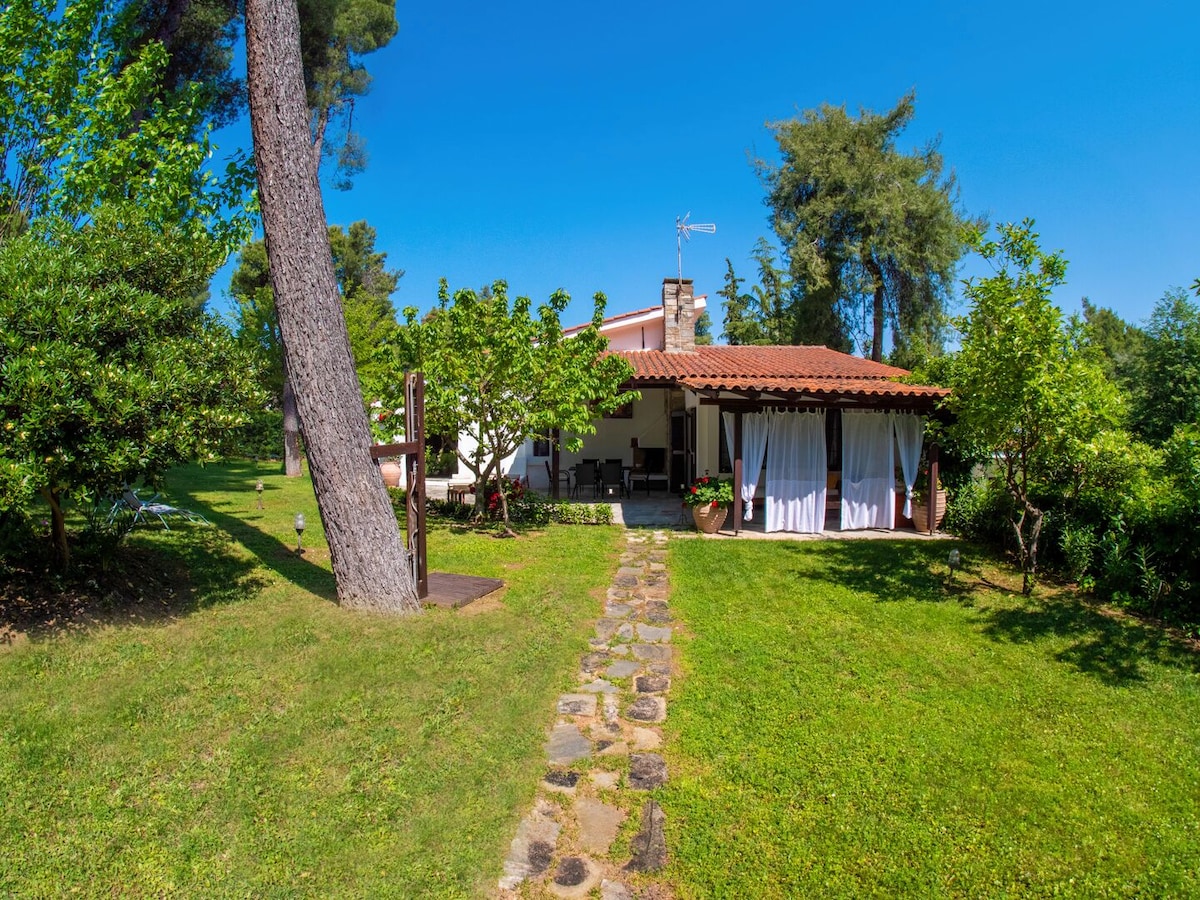 Dar mibnija ġdida, magħmula b 'attenzjoni, sabiħa bil-kumditajiet kollha biex tiżgura żjara komda. Kċina mgħammra għal kollox. TV, A/C. Iż-żewġ sodod għandhom saqqijiet ipoallerġeniċi anatomiċi u mħaded. Kamra tal-banju kbira b 'hairdryer u magna tal-ħasil. Terrazzin privat kbir b 'fann li jċedi u loungers tax-xemx fit-tarzna.Doċċa fuq barra. Ftit passi biss mill-baħar.Qrib hemm taverni, SM, ħwienet, kafetteriji u bars.Thessaloniki ajruport huwa madwar 35km bogħod u 13km biss huwa l-Grotta Petralona Halidiki