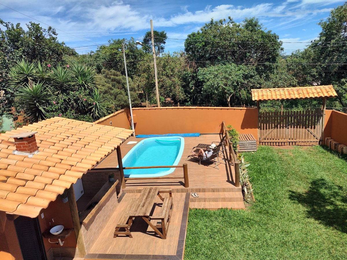 Aħna ninsabu 3 blokki 'l bogħod mill-kwadru fejn jinsabu l-biċċa l-kbira tal-bars u r-ristoranti, snack house u prattikament inħarsu lejn il-forn. Il-kaskata ta' Boqueirão tinsab 10 minuti bil-mixi 'l bogħod minn Varanda do Toá, Poço de Pedra 15-il minuta u 25 minuta' l bogħod minn Rapel. Id-dar tagħna għandha tliet suites tripli komdi ħafna u kċina b' veduta mill-isbaħ. Għandna pixxina u barbikju tal-barbikju esperjenza f' dan il-post li jinsab f' post tajjeb.