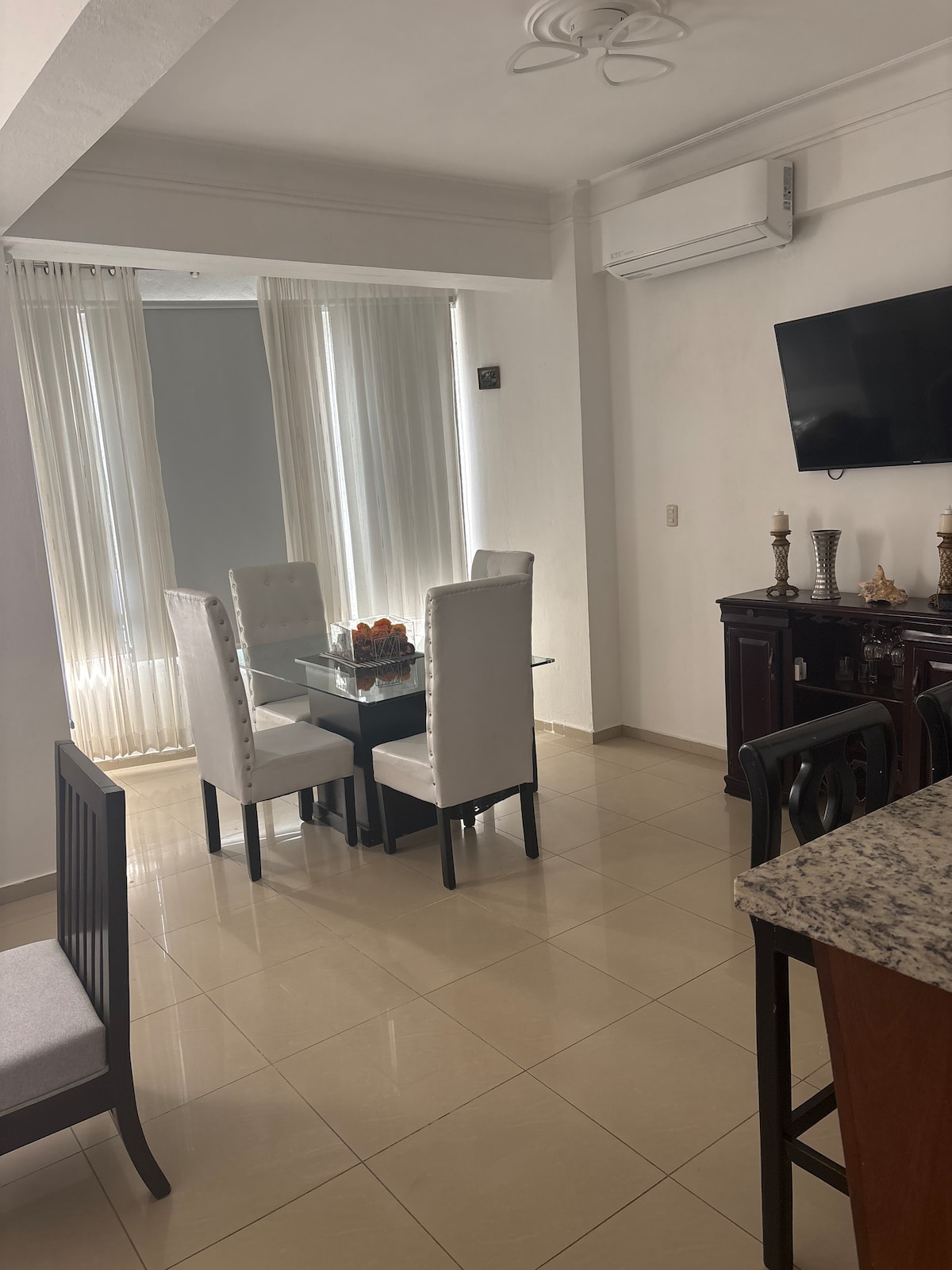Diviértete con toda la familia en este alojamiento con estilo. Confortable y céntrico apartamento en la ciudad de Santiago; Ideal para disfrutar en familia , cuenta con todas las amenidades necesarias para una estancia cómoda y segura; aire acondicionado en todas las habitaciones, maya de protección en el balcón. Cámaras y seguridad 24 horas, entrada autónoma y supermarket en el recinto. Gazebo con piscina de adultos y niños, área de diversion para niños, además 2 parqueos disponibles.