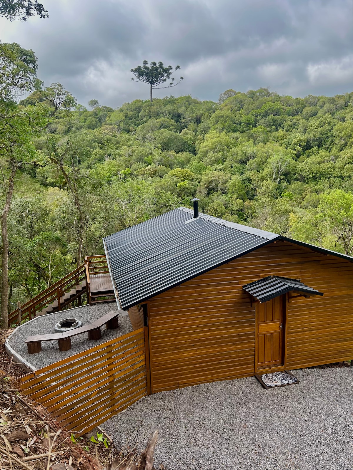 PREÇO PROMOCIONAL DE ABERTURA, inclui café da manhã. Cabana na Serra Gaúcha! Refúgio exclusivo com escadaria privativa para o rio, espaço para fogueira, banheira com vista e sala com TV. Cozinha completa, banheiro moderno e ambiente cercado pela natureza. Ideal para casais que buscam conforto, tranquilidade e momentos inesquecíveis. Desfrute do som do rio, do ar puro da serra e de noites estreladas ao redor da fogueira. Possui uma cachoeira que cerca a cabana, perfeito para passeios e fotos.