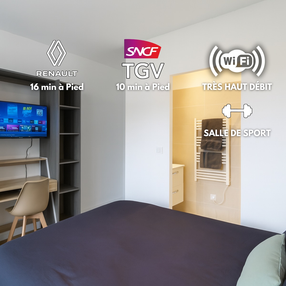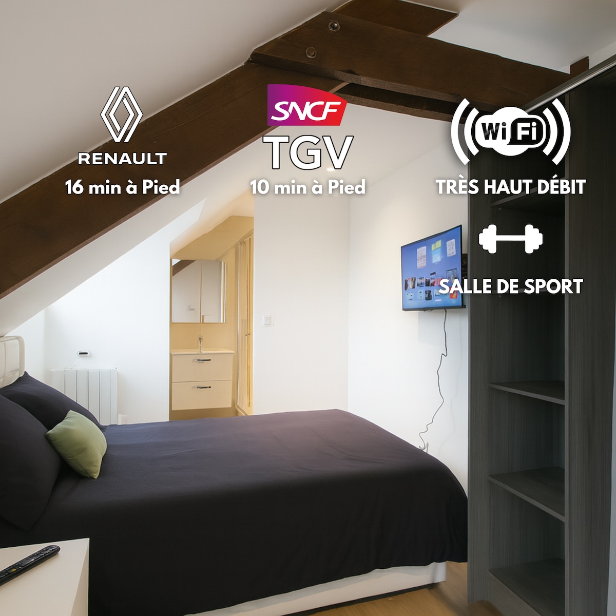 Kiri staġonali għal lejl jew fit-tul. Ideali għall-familji jew koppji, dan l-appartament indipendenti fis-sular t 'isfel tal-belt tagħna jilqgħek għal mhux iktar minn erba' persuni. Ħafna ħwienet fil-qrib jippermettulek takkwista l-ikel kollu meħtieġ. L-akkomodazzjoni tinsab 5 minuti mill-istazzjon tal-ferrovija tal-SNCF jew miċ-ċentru tal-belt, 10 minuti miċ-ċirkwit ta '24 siegħa, Salle Antares, Stade MMArena bil-karozza.