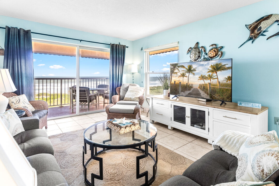 Steps from the sand! Upscale and spacious 1 bedroom, 1 bath suite. Breathtaking ocean views from every angle including triple glass slider, balcony, and oversized bedroom windows! See and feel rocket launches from the private balcony. Perfect for aquatic adventurers or close-knit friends. Tastefully appointed and newly renovated, expect an idyllic location for on-the-water fun with luxury for up to 4 guests Near Disney/Orlando Airport, Kennedy Space Center, Port Canaveral, Cocoa,Melbourne