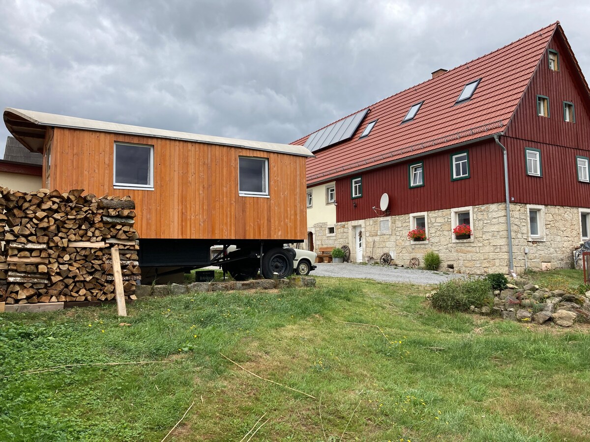 Il-vagun tar-rgħajja tagħna jinsab fuq il-Kraxlerhof tagħna, f 'nofs l-Isvizzera Saxon li tħares lejn il-ħitan ta' Ochelw. B 'ħafna mħabba, issa spiċċajna l-kamra tar-rgħajja tagħna fl-aħħar ta' Lulju 2022 għal mhux iktar minn żewġ persuni. Id-destinazzjonijiet kollha tal-hiking huma aċċessibbli faċilment mir-razzett tagħna. Aħna kuntenti li nagħtuk pariri ta 'eskursjonijiet interessanti madwar ir-reġjun tal-hiking ta' Saxon Switzerland.