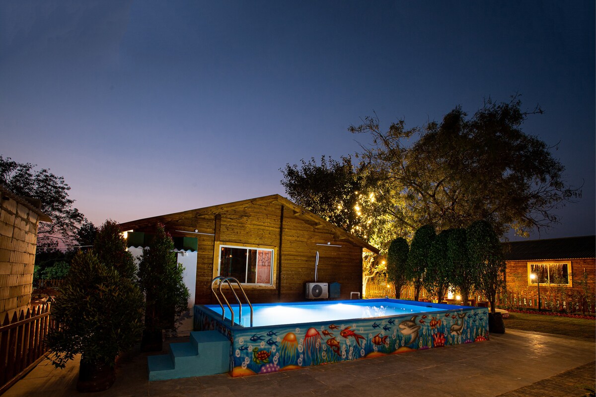 Merħba f'post fejn toqgħod għall-kwiet maħsub għall-iktar mistrieħ possibbli. Irrilassa u strieħ f'dan l-ispazju kalm u eleganti, mgħammar b'tali mod li joffri post ideali fejn taħrab mill-istress ta' kuljum. Il-propjetà għandha 3 BHK (Kamra tas-sodda, Sala, Kċina) spazjużi u mgħammra kompletament, li joffru biżżejjed spazju għall-familji jew għall-gruppi ta' ħbieb. Wieħed mill-punti ewlenin taż-żjara tiegħek huwa l-pixxina privata, b'daqs ta' 24×12×4.5 piedi. Dan id-daqs kbir huwa ideali għal għawma friska, għawma ta' mistrieħ jew xi logħob divertenti fil-pixxina.