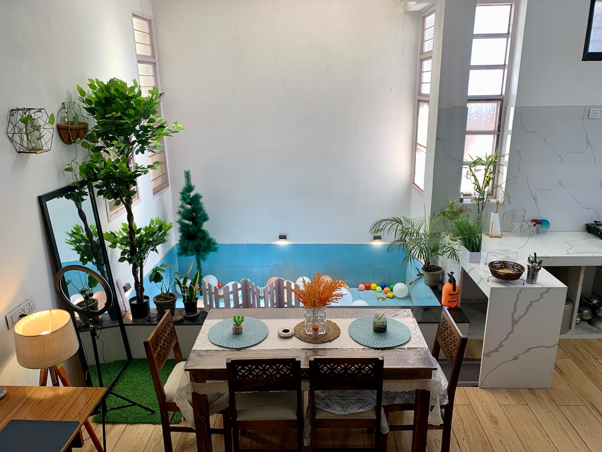 Merħba f’Bageecha Ghar – Il-Post Privat Tiegħek fejn Tista’ Taħrab f’Udaipur – Pool fuq Terrazzin Privat, Ġnien, Netflix u Veduti Sbieħ qrib Sajjangarh 🌄 Mistura xi mkien f'rokna kwieta ġewwa Udaipur, ftit minuti bogħod mill-Għadira ta' Fatehsagar u l-Palazz Monsoon, din il-post fejn toqgħod b'ġnien hija post ideali għal mumenti ta' serħan, vaganzi romantiċi u atmosfera rilassata. Gawdi l-ġnien sabiħ u l-Pixxina bit-Terrazzin Privat b'inżul ix-xemx mill-isbaħ. Kemm jekk qiegħed hawn biex tirrilassa kif ukoll jekk qed tilqa' n-nies, Bageecha Ghar tgeżwrek fil-kumdità, fil-kalma u f' sens ta' dar.