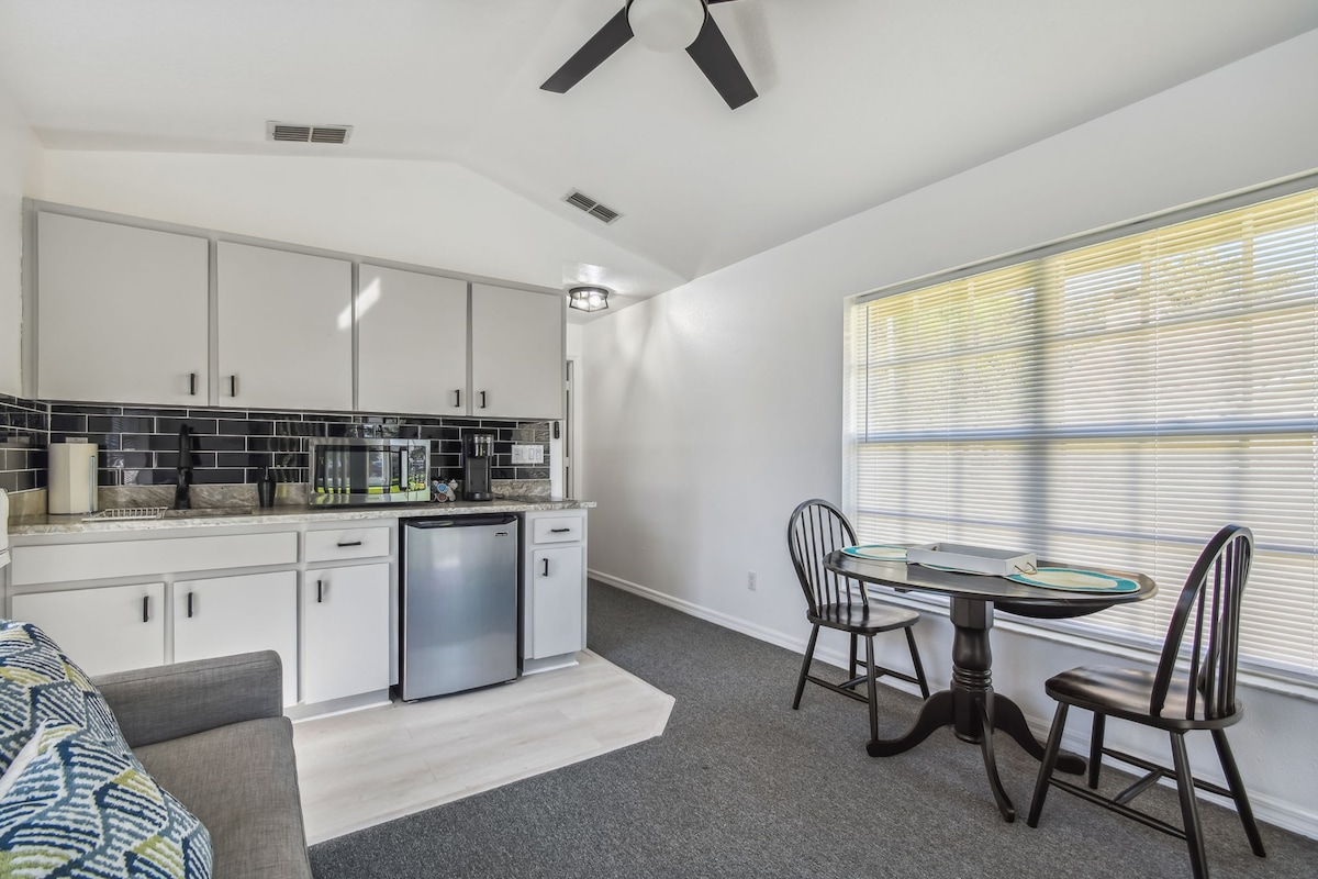 Merħba fid-dar tiegħek 'il bogħod mid-dar! Dan l-appartament ta' studio eleganti u mfassal bi ħsieb joffri dak kollu li għandek bżonn għal żjara komda fiż-żona ta' Tampa. Bi spazju apposta għax-xogħol. Qrib kollox, 20 minuta 'l bogħod miċ-ċentru ta' Tampa u d-distrett tal-kanal, 25 minuta' l bogħod minn Bush Grandes, 45 minuta' l bogħod mill-aqwa bajjiet fl-Amerika u ftit iktar minn siegħa' l bogħod mill-parks b' tema kollha ta' Orlando. Għal koppji bi tfal żgħar, benniena tista' tiġi pprovduta skont it-talba.