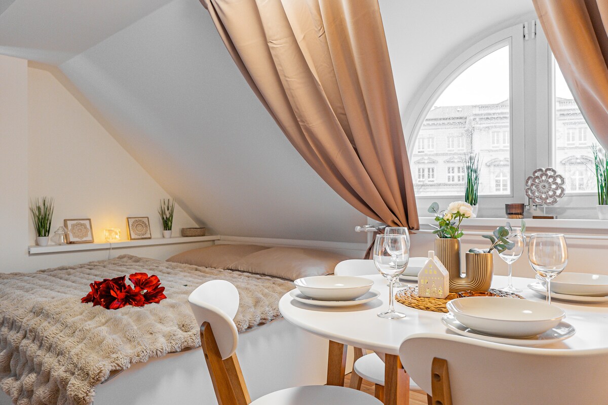 L-akkomodazzjoni tinsab fiż-żona tal-ispa, iżda tista' tipparkja b'xejn 3 minuti mixi 'l bogħod minn hawn. Hemm ukoll waqfa tal-karozzi tal-linja. Fl-istess ħin, jinsab biss ftit metri 'l bogħod mill-famuża Mlýnská kolonáda. Il-Masarykova hlavní třída tista' tintlaħaq bil-mixi f'7-10 minuti. L-akkomodazzjoni hija adattata għall-koppji minħabba l-kumdità tal-attik tagħha. Hemm Wi-Fi veloċi b'xejn u kamra tal-banju b'art tal-ġebel imsaħħna u hairdryer. Xugamani, sapun, shampoo, kafè, te inklużi fil-prezz tal-akkomodazzjoni! PARKING B'XEJN - 3 minuti mixi
