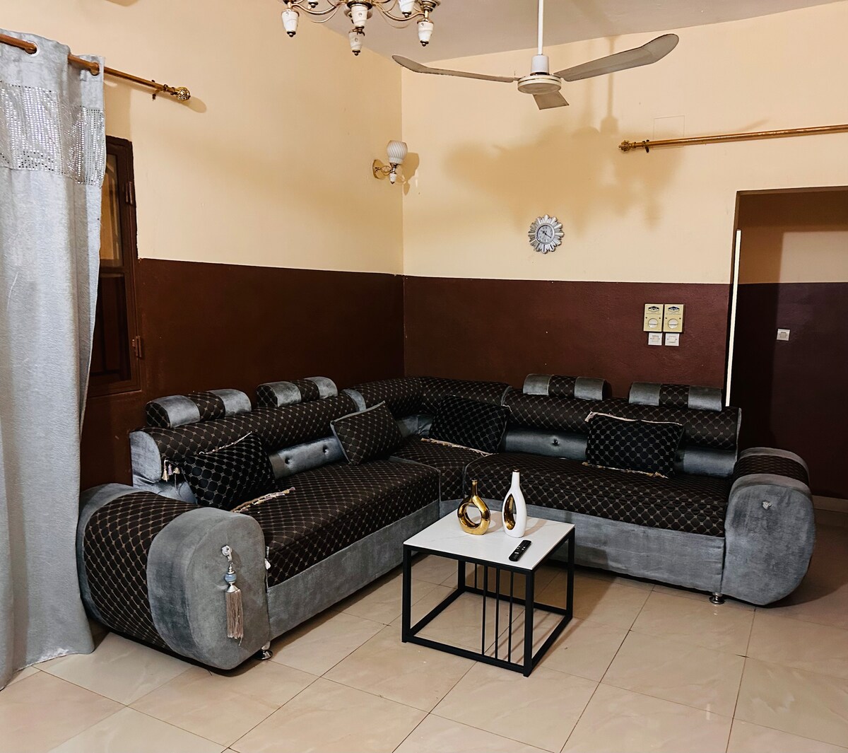 Gawdi akkomodazzjoni eleganti u ċentrali li tgħaqqad il-modernità u l-minimizzazzjoni fil-qalba taċ-ċentru tan-negozju ta 'Bamako. Nistennew bil-ħerqa li nilqgħuk f 'ambjent nadif u sigur li jinsab biss ftit passi' l bogħod mill-attrazzjonijiet ta 'Bamako. Tinkwetax dwar il-qtugħ tad-dawl! Aħna niżguraw aċċess kontinwu għall-elettriku il-ħin kollu! Tista 'tuża wkoll konnessjoni tal-ottika b' veloċità għolja biex tissodisfa l-ħtiġijiet kollha tiegħek.