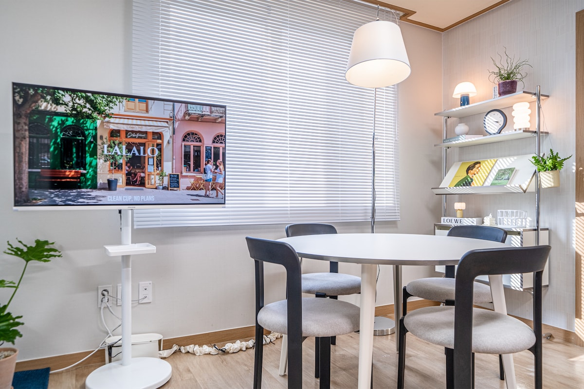 Pixxina b' veduta tax-xmara, bjankerija tas-sodda f' lukanda, art privata ta' 60 pyeong, oġġetti tal-mejda, Netflix