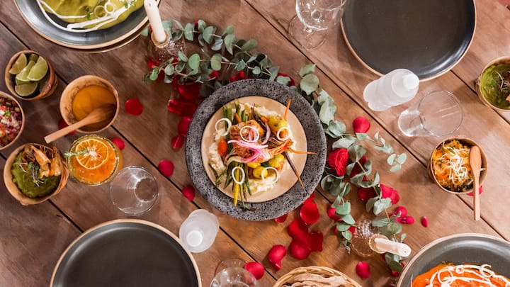 Gawdi ikla privata speċjali u mingħajr inkwiet fil-villa ta' Tulum tiegħek. Il-Kok Jair iħejji tliet korsijiet, fejn kull platt juri l-ħila u d-dedikazzjoni tiegħu. B' ingredjenti premium u preżentazzjoni impekkabbli, din l-ikla ta' filgħaxija intima se tkun xi ħaġa vera għall-palat. Hija l-għażla ideali għall-koppji li qed ifittxu lejl romantiku jew gruppi żgħar li jixtiequ esperjenza ta' kwalità għolja mingħajr ma jħallu l-kumdità tal-akkomodazzjoni tagħhom.