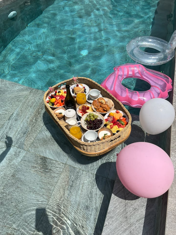 Esperjenza bidu uniku u tajjeb għar-ritratti bil-Kolazzjon Floating tagħna fil-pixxina privata tiegħek. Trej eleganti jidħol f' wiċċ l-ilma b' għażliet friski u li jogħlew. Din hija esperjenza lussuża u paċifika, perfetta għal koppji jew gruppi żgħar li qed ifittxu mument li ma niftakrux. L-iktar mod viżwali u rilassanti kif tgawdi l-kolazzjon tiegħek ġewwa Tulum.