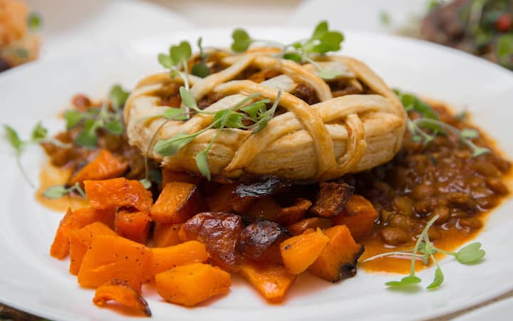 Din l-offerta fiha ingredjenti organiċi friski fl-irziezet u togħmiet vibranti - maħduma bi tħejjija kreattiva u preżentazzjoni maħsuba.