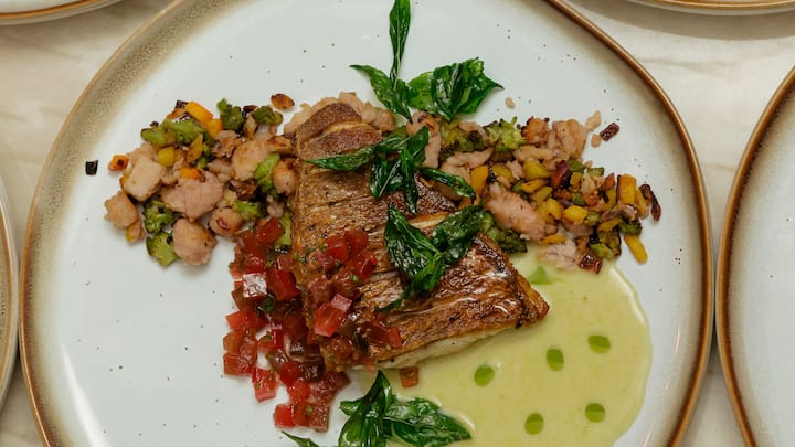 Ikla ta' filgħaxija bi tliet korsijiet mal-Kok Rio, li turi l-aqwa ingredjenti u provvisti tal-gżejjer
