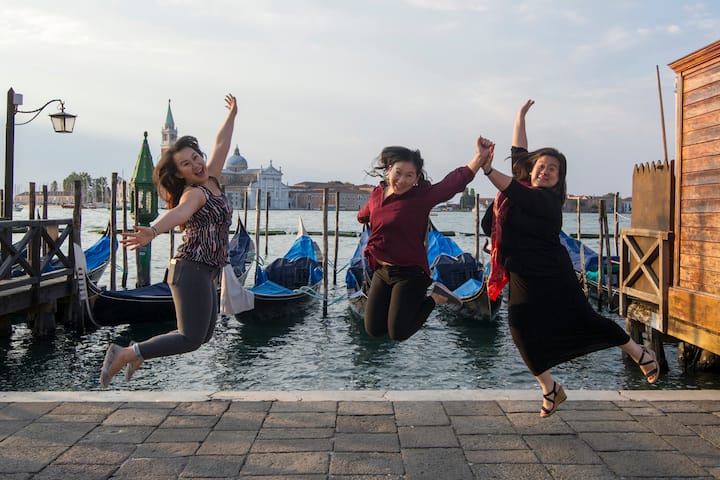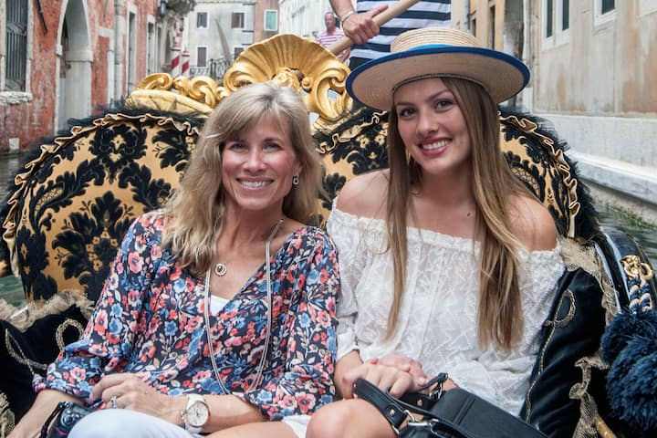 - Żid il-messaġġ essenzjali tal-Venezja b' rikba fuq gondola, li turi lilek innifsek fl-isfond tal-passaġġ fuq l-ilma tal-belt