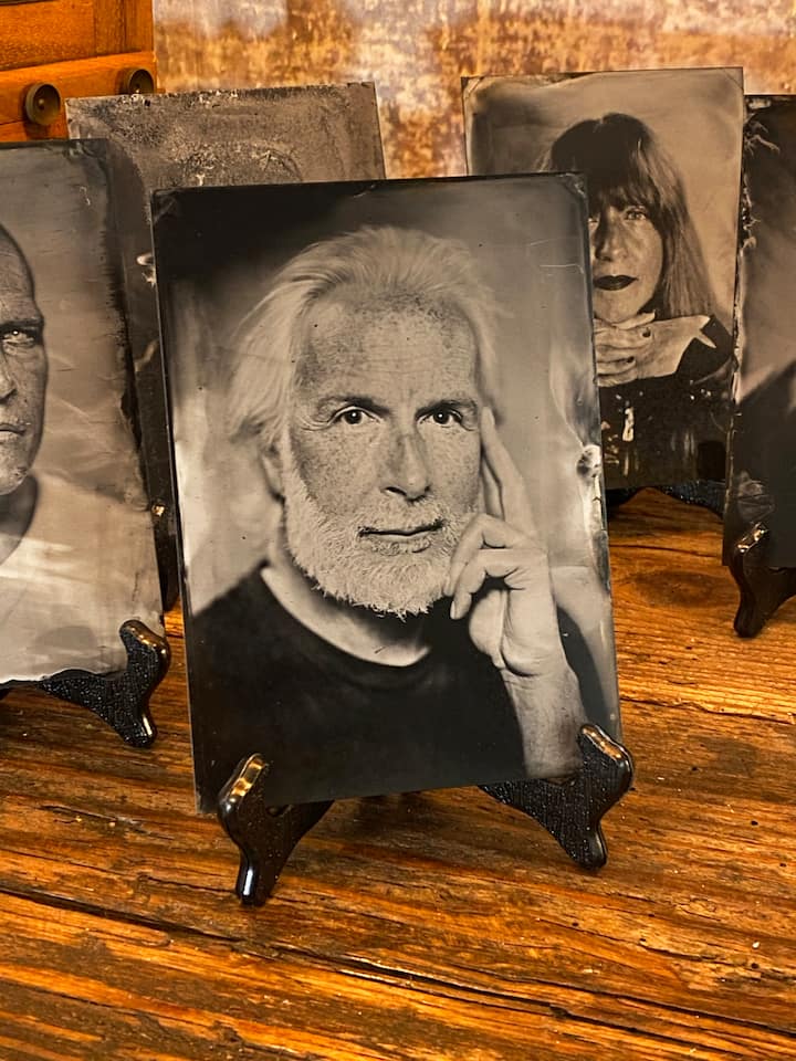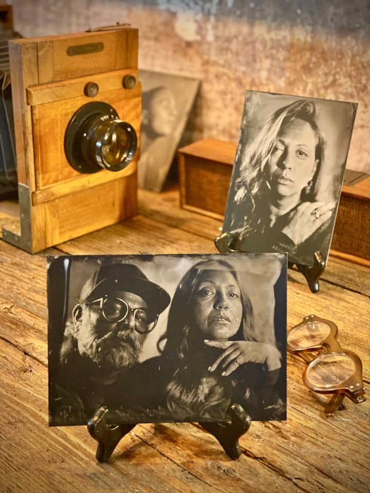 Ikseb ritratt mingħajr żmien tiegħek u ta' ħaddieħor billi tuża t-teknika tal-kollodjoni mxarrba fuq pjanċa tal-aluminju ta' 5x7 pulzier żviluppata quddiemek.