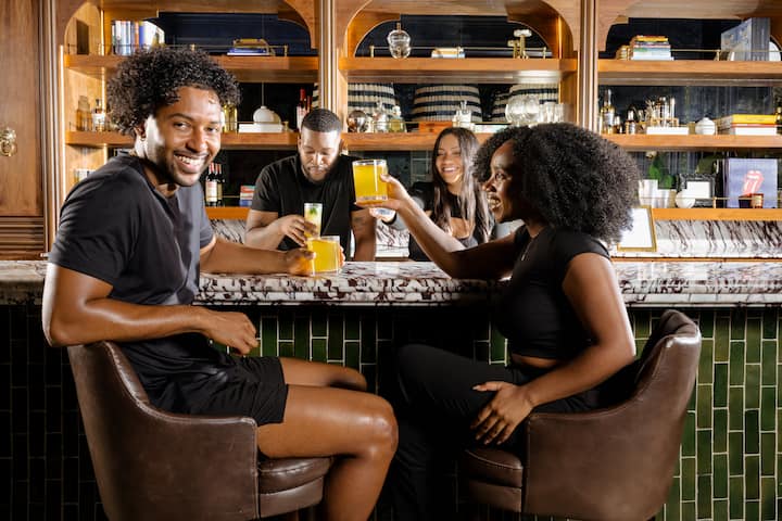 Din il-lezzjoni dinamika tal-fitness timxi ma' pop-up b' mocktails tal-benesseri. It-tagħmir kollu għall-eżerċizzju fiżiku huwa pprovdut.