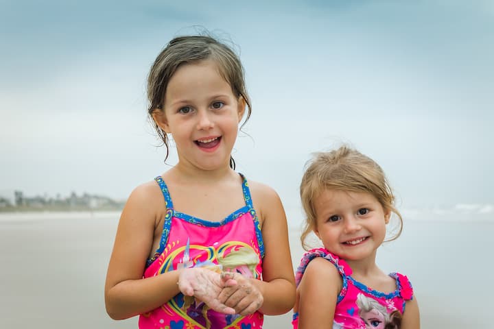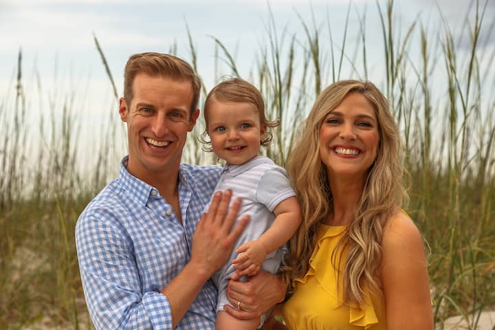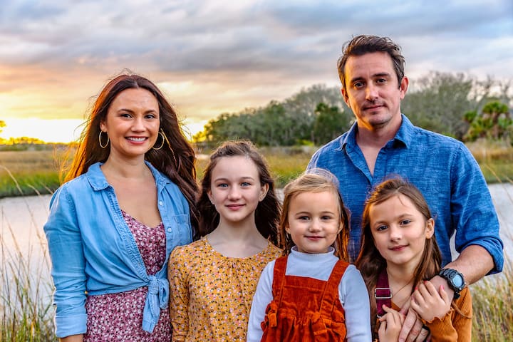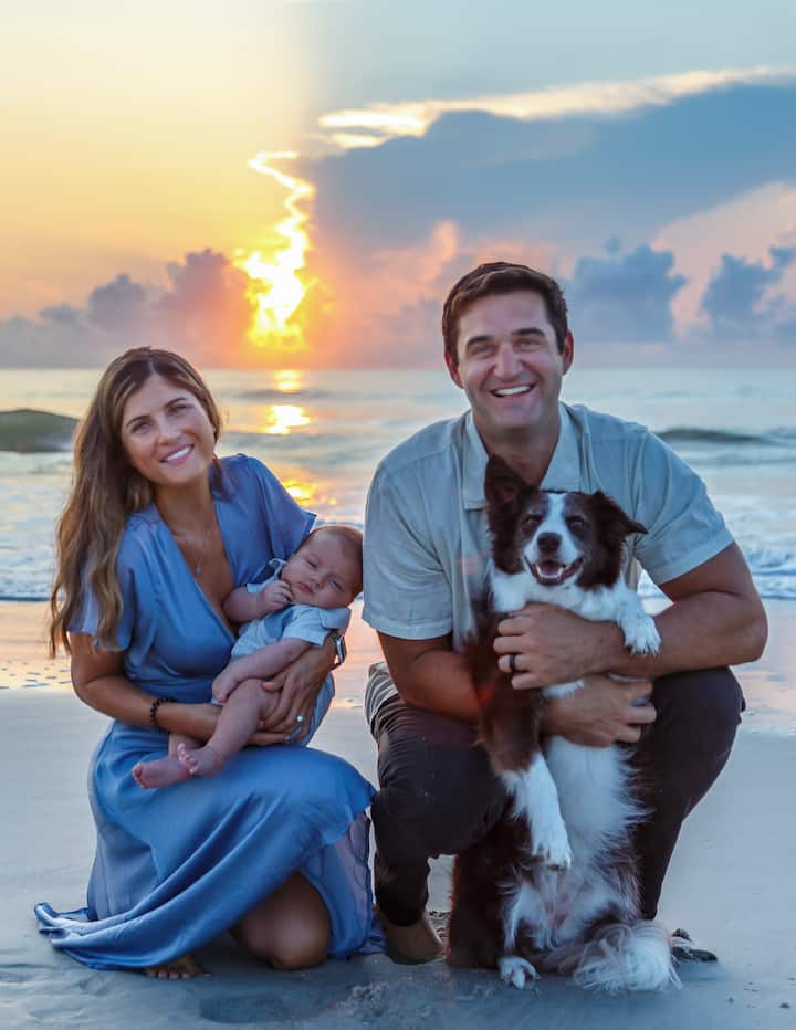 Jien noffri ritratti tal-familja u tal-pets fuq il-bajja b' dawl naturali u sfond tal-oċean.