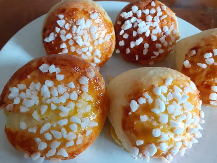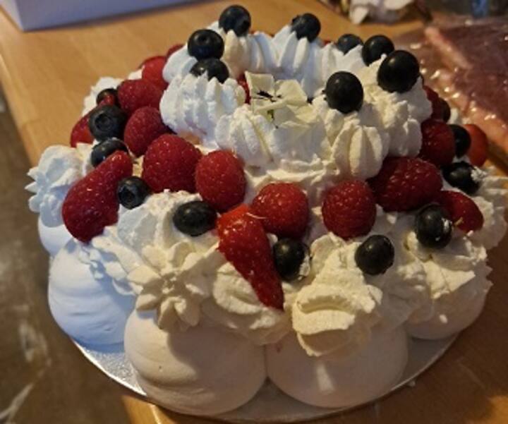 Meraq tal-frott lokali, te jew kafè, cookies, flauti, madeleines, għaġina żgħira, krema tal-lumi, granola magħmula d-dar, buns, ħobż, ġamm artiġjanali u butir.