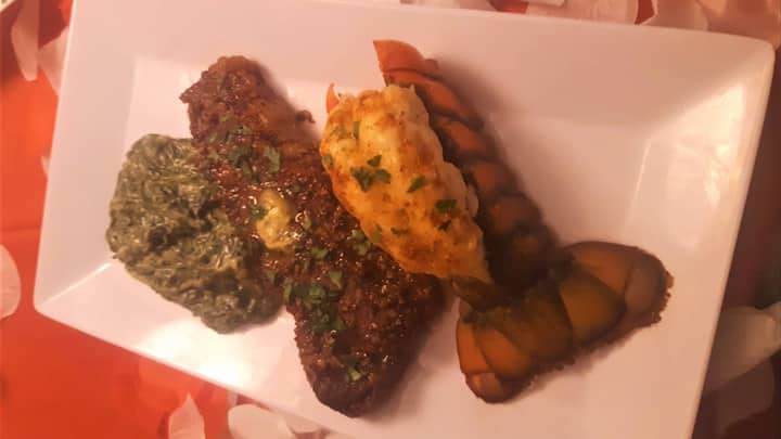 Din l-ikla b' 4 korsijiet fiha tessuti differenti u togħmiet staġjonali miksija b' mod artistiku. Gawdi platti bħal insalata bil-ħxejjex imħallta, steak tal-istrixxa ta' New York, patata mgħaffġa f' Cajun u kejk aħmar velvet għad-deżerta. L-akkomodazzjonijiet tad-dieta huma disponibbli fuq talba.