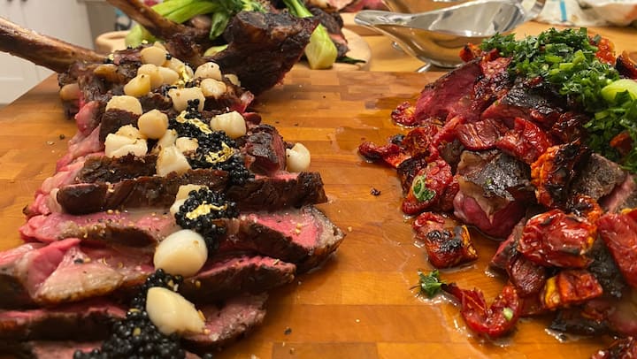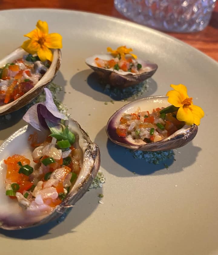 Il-menù jgħaqqad l-art u l-baħar fuq 8 platti eleganti.