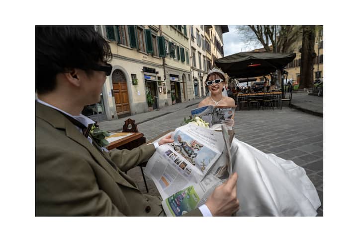 Ritratt ta' koppja romantika jew divertenti fit-toroq ta' Firenze. Inkluż stampar 20x30 fuq karta matt professjonali.