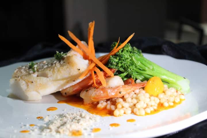 Imħarreġ permezz ta' apprendistati f' ikliet fini f' Max Oyster Bar u Marcel.