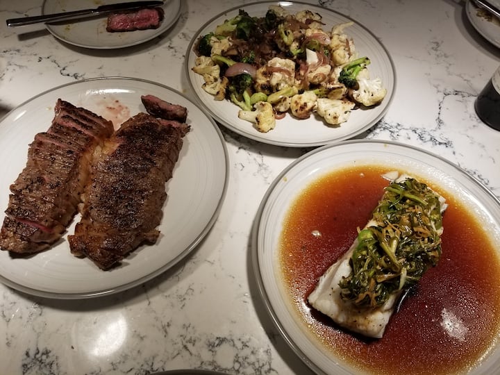 Il-klijenti jagħżlu kull kors minn lista ta' għażliet għal appetizer, nofs il-kors, entrée u deżerta.