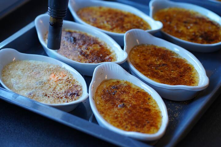 Ħejji ruħek għal vjaġġ kulinarju eleganti li jinkludi cappuccino bit-tartuf, tartare tal-granċ u tempura tal-asparagus, loin tal-merluzz bil-frott tal-baħar bil-qoxra jus u crème brûlée b' raspberries u laqx tal-ġellewż karamelizzat