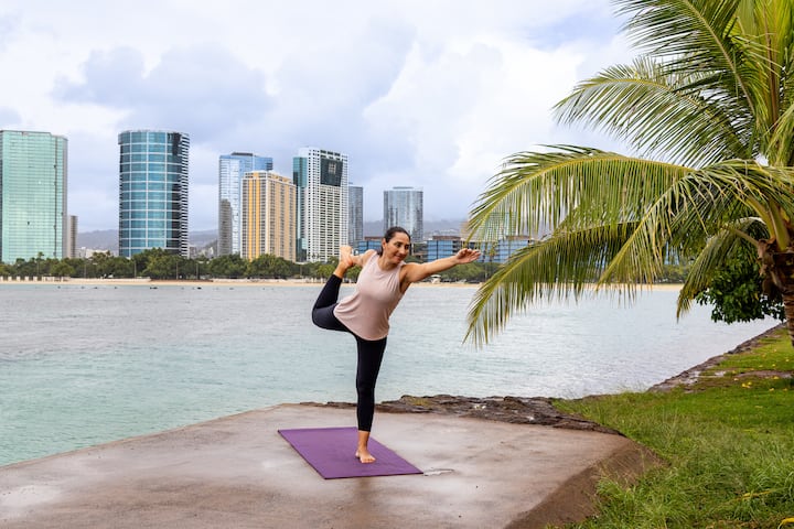 Ibda l-Ħadd tiegħek b'moħħok seren u bix-xemx! Ingħaqad mal-lezzjoni tal-yoga tagħna f'Magic Island, imdawra bis-siġar tal-palm, ir-riħ tal-baħar u veduti mill-isbaħ ta' Diamond Head.